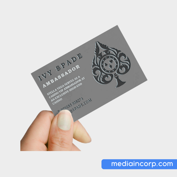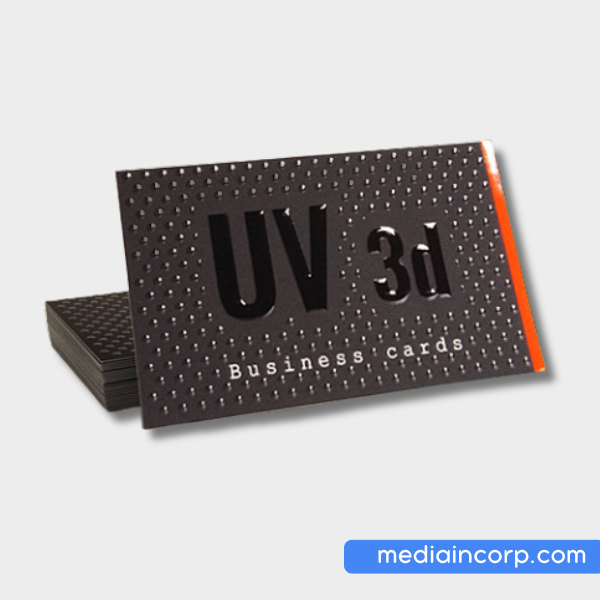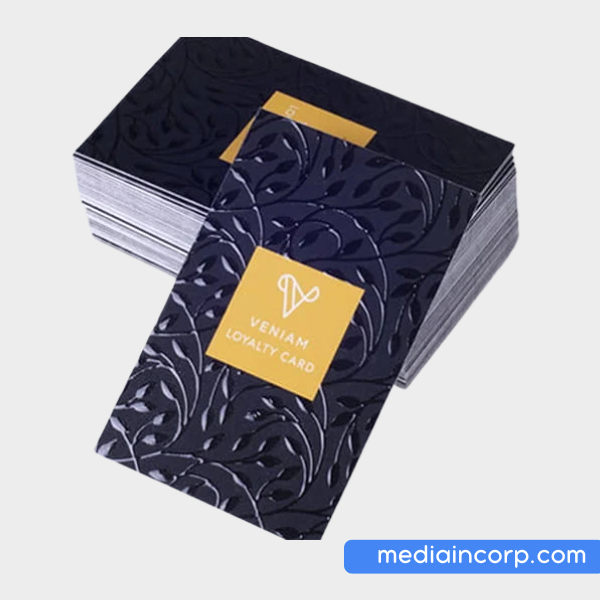 Elegant business cards with raised spot-UV for a premium and tactile finish.